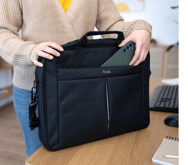 Disponibilité: En stock Le Trust Sacoche PRIMO 16″ assure une protection efficace et un transport confortable pour votre ordinateur portable grâce à sa conception légère et résistante, parfaitement adaptée à un usage quotidien. Son format sacoche fonctionnel accueille en toute sécurité les PC jusqu’à 16 pouces, tout en facilitant l’accès rapide à votre appareil. Pratique et bien pensé, il intègre des compartiments dédiés pour vos accessoires indispensables comme le chargeur, la souris ou les documents. Avec son design sobre et moderne signé Trust, ce sac combine simplicité, fiabilité et praticité pour vos déplacements professionnels ou personnels.